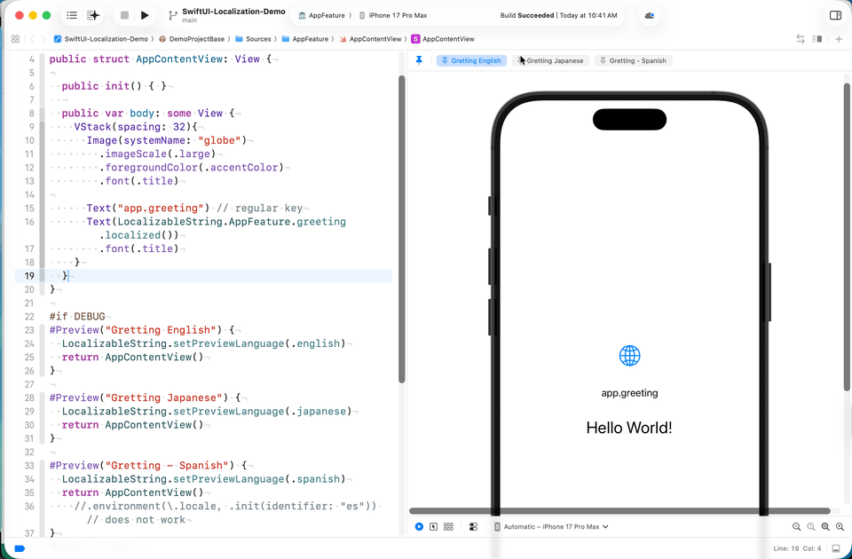 Tags: SwiftUI, Swift Package Manager, iOS Development, Localization, String Catalog, SwiftUI Previews, Type Safety, Xcode